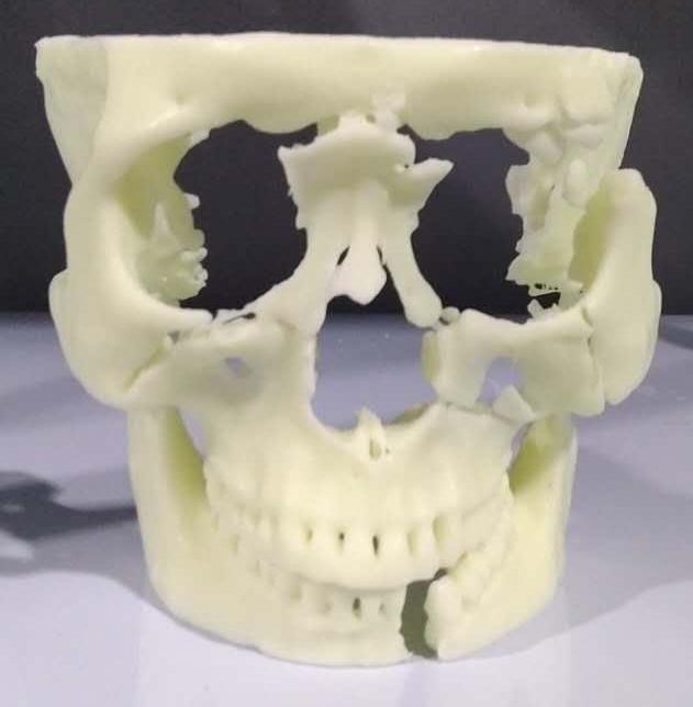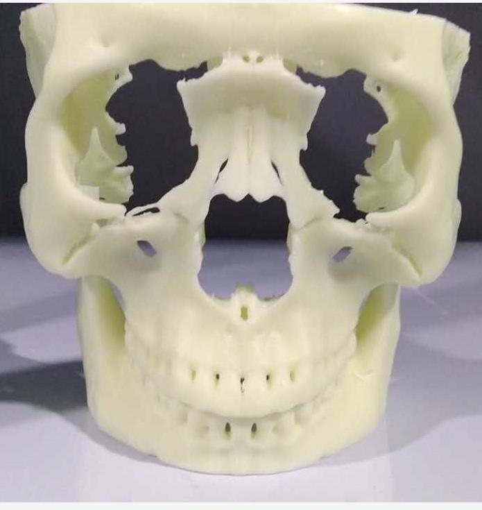 患者由于发生严重的车祸撞击,导致面部骨骼大面积骨折,需要进行手术修复。使用3D打印技术制作出患者的面部骨骼破损情况,以便于医生进行术前规划,同时也让医生与患者的沟通更方便。