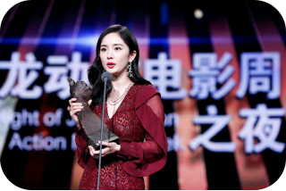 2017年成龙动作电影周-杨幂凭借《逆时营救》获得动作女演员奖奖杯