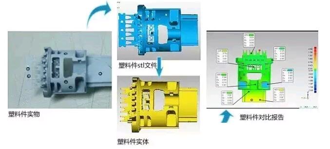 三维扫描系统能在极短时间内,对结构复杂、曲面较多的配件或者难以成型的大型汽车样件,进行快速扫描,制造出高精细度高的产品。利用三维数据可以对原有数模进行分析检测,最大限度保证了配件及模具的质量;利用三维数据进行逆向建模,可以提高设计师的工作效率和设计质量,从而保证模具的生产时间。