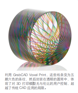 GrabCAD Voxel Print 提供了一种全新的“设计到制造”架构,支持研究人员、开发人员和创新者采用多材料沉积、定位和结构美学精确控制。