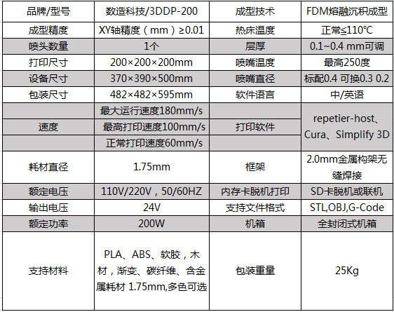 1、打印完成后可以自动关机,安全可靠。 2、工业级电路板,噪音低,工作分贝小于50dB。 3、进口石墨轴承,精密光轴,保障更高打印精度。 4、2.0mm金属构架无缝焊接,高规格烤漆工艺,外观简洁、性能稳定。 5、近程送料,可打印多种打印机耗材,加装断料检测装置,保障大尺寸模型的正常打印。 6、工作稳定,连续200小时无压力。 7、3MM一体式铝制加热平台,加热安全快速,热床温度可达100度,避免模型翘边。